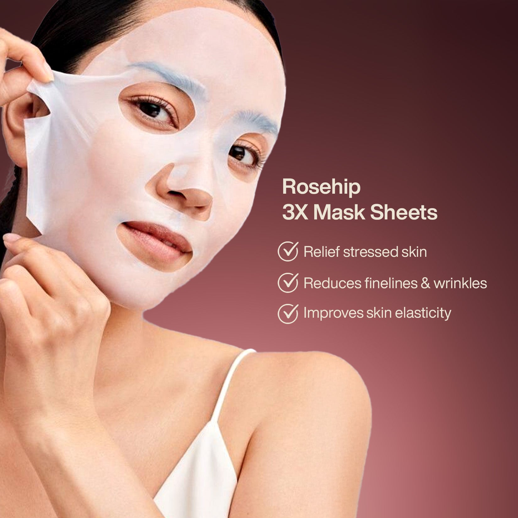 Give your skin a radiant boost with our Rosehip-infused face mask. Packed with clinically proven, certified ingredients, this 3X stronger sheet delivers intense hydration, promotes collagen production, and smooths fine lines for a firmer, youthful look.